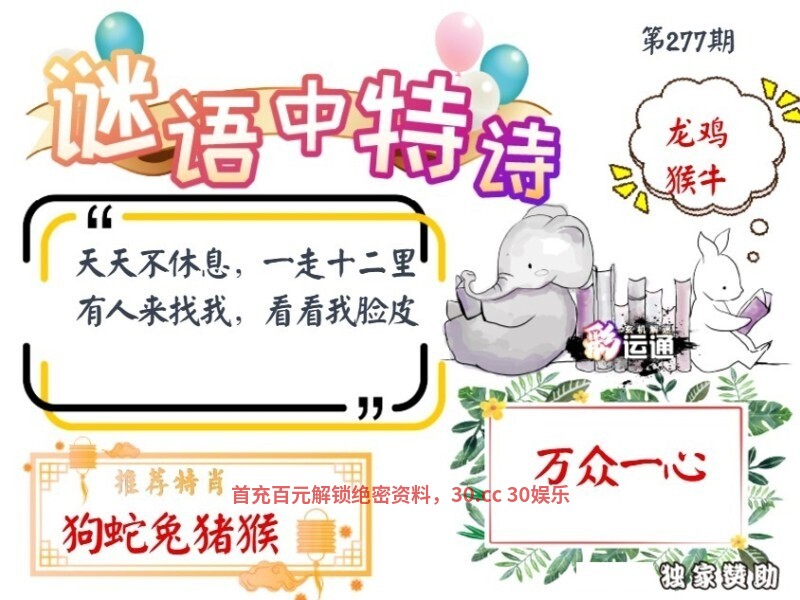 277期:六肖中特╠狗马猪猴兔鸡╣开虎16
